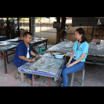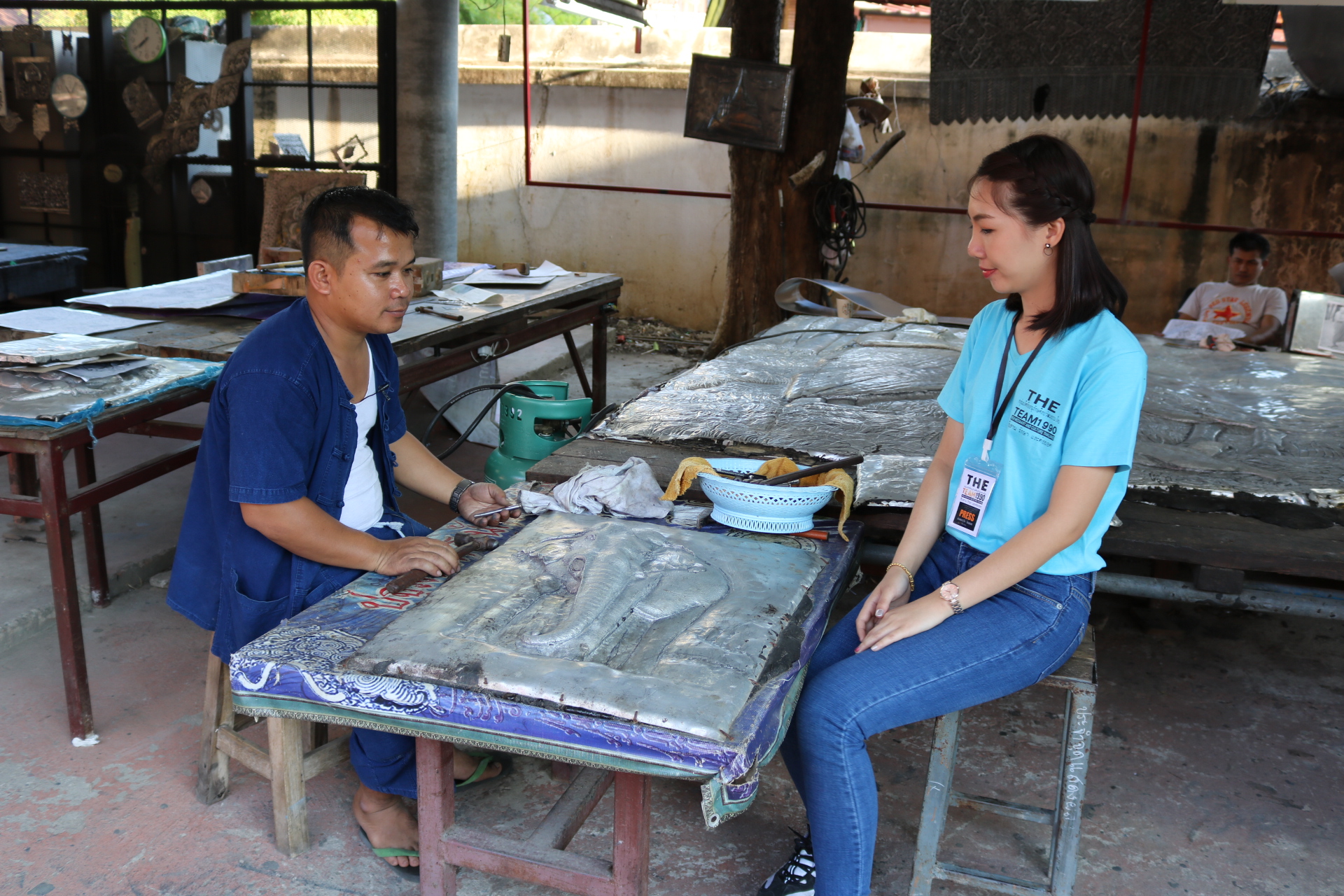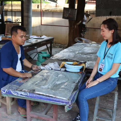 | คำอธิบาย : ภาพจากวัดศรีสุพรรณ จ.เชียงใหม่ สอนการตีเครื่องเงิน |