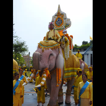 | คำอธิบาย : เมื่อวันที่ ๗ พฤษภาคม ๒๕๖๒ กลุ่มคชสารคู่แผ่นดิน “มูลนิธิพระคชบาล” จากวังช้างอยุธยา และตัวแทนชาวช้างทั้งประเทศ ในนาม กลุ่มคชสารคู่แผ่นดิน จำนวน ๕๐๐ คน นำช้างคชลีลา ๑๑ เชือก เดินเทิดพระเกียรติ และแสดงความจงรักภักดี “คชสารคู่แผ่นดิน เทิดไท้องค์ ราชัน” ถวายพระพรชัย หน้าพระบรมฉายาลักษณ์พระบาทสมเด็จพระวชิรเกล้าเจ้าอยู่หัว บริเวณประตูสวัสดิโสภา พระบรมมหาราชวัง |