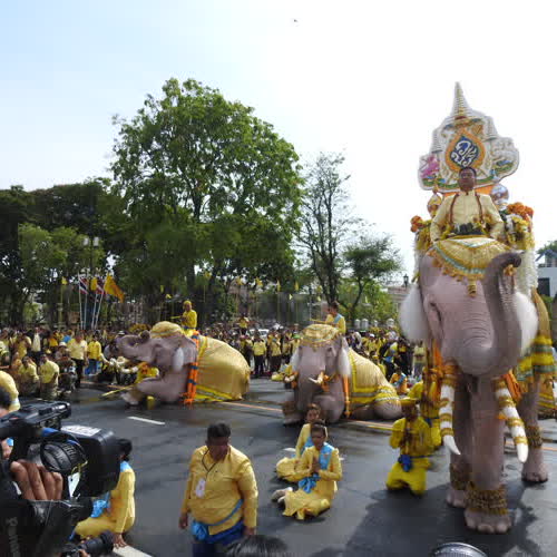 | คำอธิบาย : เมื่อวันที่ ๗ พฤษภาคม ๒๕๖๒ กลุ่มคชสารคู่แผ่นดิน “มูลนิธิพระคชบาล” จากวังช้างอยุธยา และตัวแทนชาวช้างทั้งประเทศ ในนาม กลุ่มคชสารคู่แผ่นดิน จำนวน ๕๐๐ คน นำช้างคชลีลา ๑๑ เชือก เดินเทิดพระเกียรติ และแสดงความจงรักภักดี “คชสารคู่แผ่นดิน เทิดไท้องค์ ราชัน” ถวายพระพรชัย หน้าพระบรมฉายาลักษณ์พระบาทสมเด็จพระวชิรเกล้าเจ้าอยู่หัว บริเวณประตูสวัสดิโสภา พระบรมมหาราชวัง |