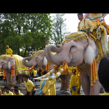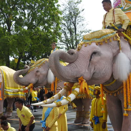 “ริ้วขบวนคชสาร” ช้างงางาม ๑๑ เชือก ถวายพระพรชัยมงคล ในหลวงรัชกาลที่ ๑๐ ได้รับใบอนุญาตภายใต้ ให้เผยแพร่-ดัดแปลง-โดยต้องระบุที่มาแต่ห้ามใช้เพื่อการค้า 3.0 Thailand.