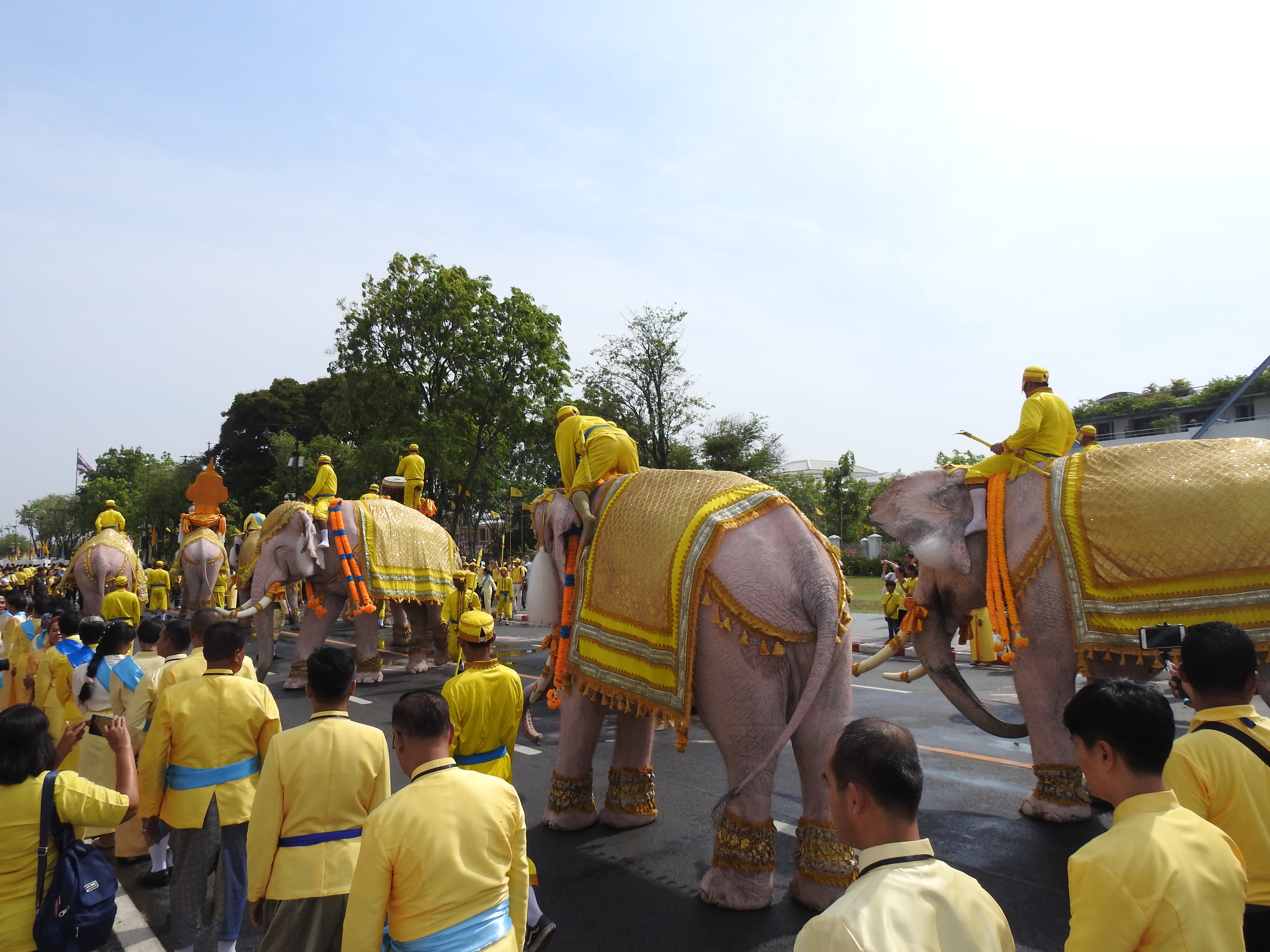 | คำอธิบาย : เมื่อวันที่ ๗ พฤษภาคม ๒๕๖๒ กลุ่มคชสารคู่แผ่นดิน “มูลนิธิพระคชบาล” จากวังช้างอยุธยา และตัวแทนชาวช้างทั้งประเทศ ในนาม กลุ่มคชสารคู่แผ่นดิน จำนวน ๕๐๐ คน นำช้างคชลีลา ๑๑ เชือก เดินเทิดพระเกียรติ และแสดงความจงรักภักดี “คชสารคู่แผ่นดิน เทิดไท้องค์ ราชัน” ถวายพระพรชัย หน้าพระบรมฉายาลักษณ์พระบาทสมเด็จพระวชิรเกล้าเจ้าอยู่หัว บริเวณประตูสวัสดิโสภา พระบรมมหาราชวัง |