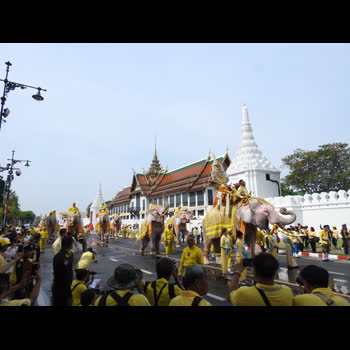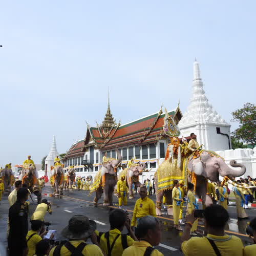| คำอธิบาย : เมื่อวันที่ ๗ พฤษภาคม ๒๕๖๒ กลุ่มคชสารคู่แผ่นดิน “มูลนิธิพระคชบาล” จากวังช้างอยุธยา และตัวแทนชาวช้างทั้งประเทศ ในนาม กลุ่มคชสารคู่แผ่นดิน จำนวน ๕๐๐ คน นำช้างคชลีลา ๑๑ เชือก เดินเทิดพระเกียรติ และแสดงความจงรักภักดี “คชสารคู่แผ่นดิน เทิดไท้องค์ ราชัน” ถวายพระพรชัย หน้าพระบรมฉายาลักษณ์พระบาทสมเด็จพระวชิรเกล้าเจ้าอยู่หัว บริเวณประตูสวัสดิโสภา พระบรมมหาราชวัง |