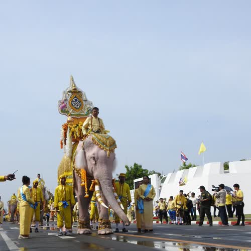 | คำอธิบาย : เมื่อวันที่ ๗ พฤษภาคม ๒๕๖๒ กลุ่มคชสารคู่แผ่นดิน “มูลนิธิพระคชบาล” จากวังช้างอยุธยา และตัวแทนชาวช้างทั้งประเทศ ในนาม กลุ่มคชสารคู่แผ่นดิน จำนวน ๕๐๐ คน นำช้างคชลีลา ๑๑ เชือก เดินเทิดพระเกียรติ และแสดงความจงรักภักดี “คชสารคู่แผ่นดิน เทิดไท้องค์ ราชัน” ถวายพระพรชัย หน้าพระบรมฉายาลักษณ์พระบาทสมเด็จพระวชิรเกล้าเจ้าอยู่หัว บริเวณประตูสวัสดิโสภา พระบรมมหาราชวัง |