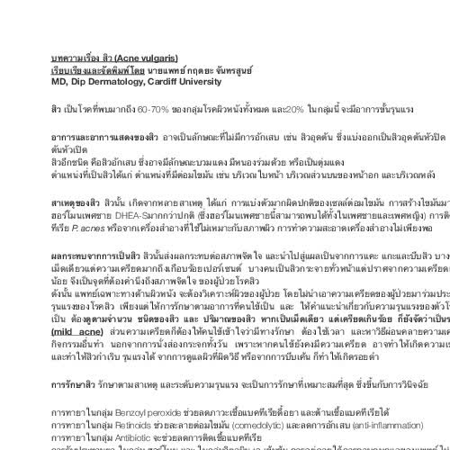 | คำสำคัญ : การรักษาสิว, สิว, cne vulgaris, อาการและอาการแสดงของสิว, สาเหตุของสิว |