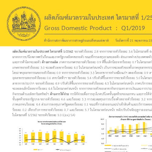 "รายงานผลิตภัณฑ์มวลรวมในประเทศ ไตรมาสที่ 1/2562".