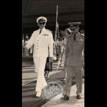 | คำอธิบาย : พระบาทสมเด็จพระเจ้าอยู่หัว และสมเด็จพระเจ้ากรุงเดนมาร์ก เสด็จพระราชดำเนินถึงท่าราชวรดิษฐ์ เมื่อวันที่ 14 มกราคม 2505 |