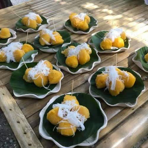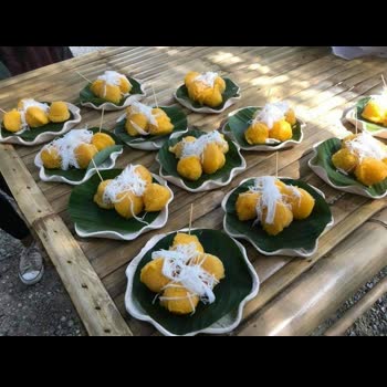 | คำอธิบาย : ขนมลูกตาล เป็นขนมที่มีส่วนประกอบด้วยลูกตาลสุกด้วย |