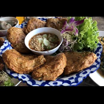 | คำอธิบาย : ทอดมันปลากรายเป็นอาหารไทยขึ้นชื่ออีกชนิดหนึ่งที่เป็นที่นิยมของทั้งชาวไทยและชาวต่างชาติ ทอดมันปลากรายทำจากเครื่องแกงผสมกับเนื้อปลากราย โดยตำให้เข้ากันจนเหนียว และนำมาทอด นิยมทานคู่กับน้ำจิ้มซึ่งใส่แตงกวาและโรยหน้าถั่วลิสงป่น |