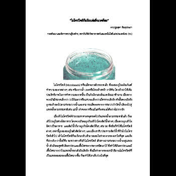 คำสำคัญ : สิ่งแวดล้อม, ไมโครบีดส์, มลพิษ, เม็ดพลาสติก, Microbeads |