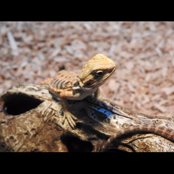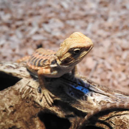 | คำอธิบาย : เบียร์ดดราก้อน (Bearded dragon) ตามธรรมชาติลำตัวจะมีสีน้ำตาลสลับกับลายสีครีมเข้ม ลำตัวเป็นเกล็ดและหนามเล็ก ๆ จุดเด่นอยู่ที่ถุงใต้คอซึ่งเป็นหนามแหลม คล้ายเครา ปัจจุบันนิยมนำมาเลี้ยงเป็นสัตว์เลี้ยง ไม่ดุร้าย |
