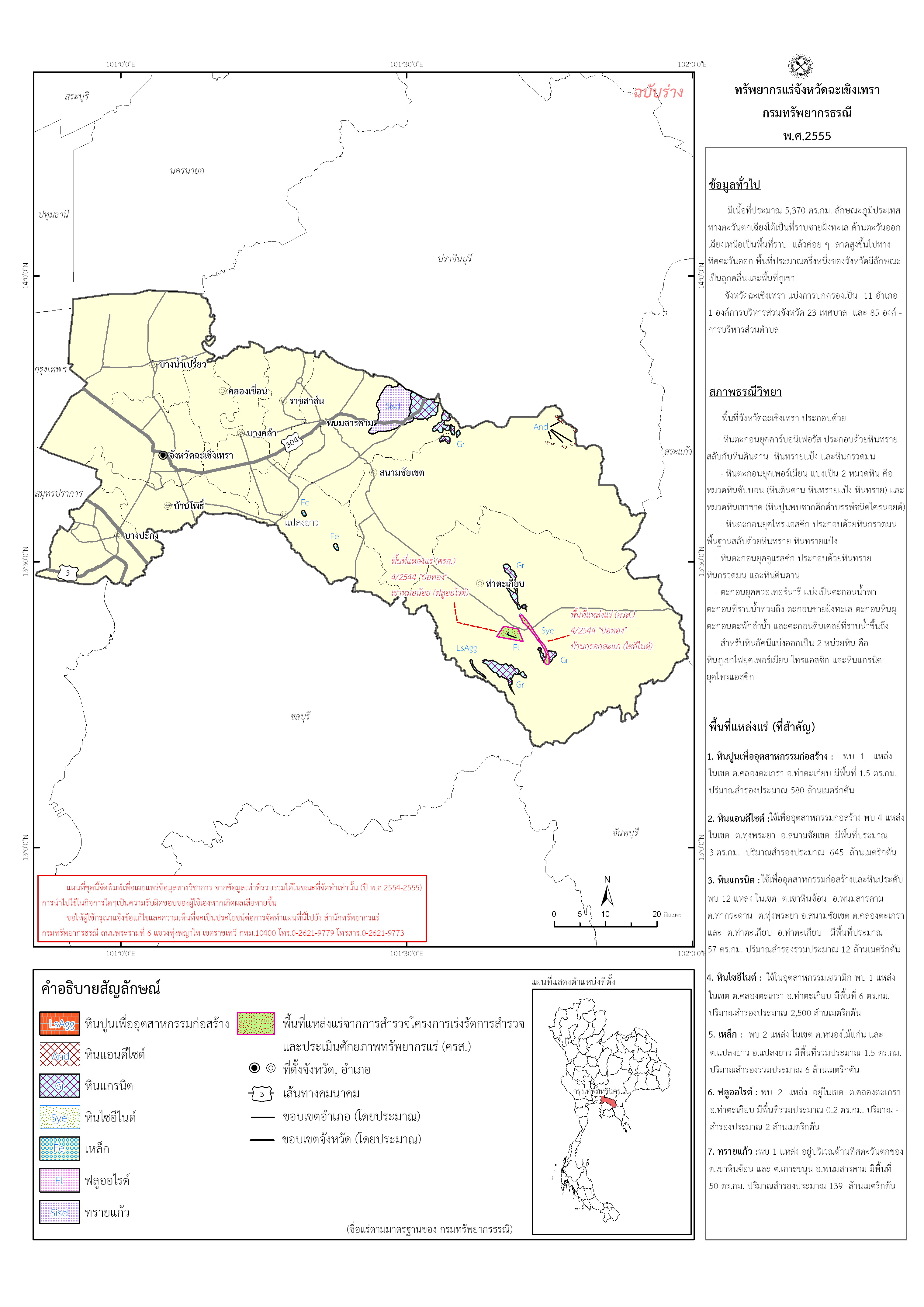 (2559). "แผนที่ทรัพยากรแร่ จังหวัดฉะเชิงเทรา".