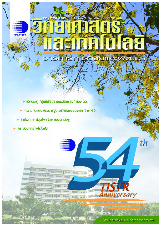 วารสารวิทยาศาสตร์และเทคโนโลยี ปีที่ 32 ฉบับที่ 2 เดือน เม.ย.-มิ.ย.2560 ได้รับใบอนุญาตภายใต้ ให้เผยแพร่-โดยต้องระบุที่มาแต่ห้ามดัดแปลงและห้ามใช้เพื่อการค้า 3.0 Thailand.