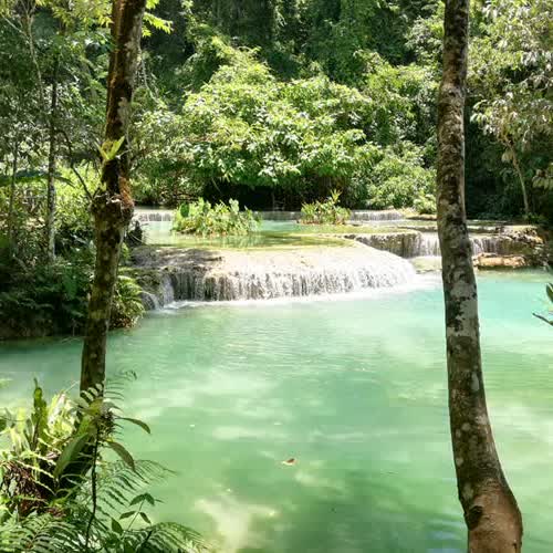 | คำอธิบาย : น้ำตกตาดกวางสี เป็นน้ำตกที่มีชื่อเสียงแห่งหนึ่งของเมืองหลวงพระบาง มีจำนวนชั้นทั้งหมด 4 ชั้น มีความสูงโดยรวมประมาณ 75 เมตร เป็นน้ำตกหินปูน |