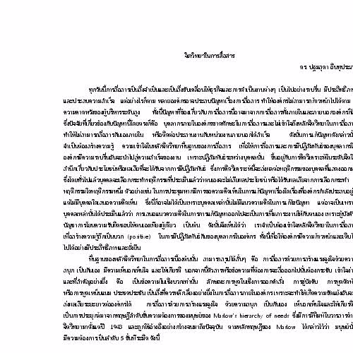 | คำอธิบาย : บทความนี้อธิบายถึงเรื่องจิตวิทยาในการสื่อสาร เพื่อให้เข้าใจปัจจัยต่างๆ ที่เกี่ยวข้องกับการสื่อสารให้ประสบผลสำเร็จ |