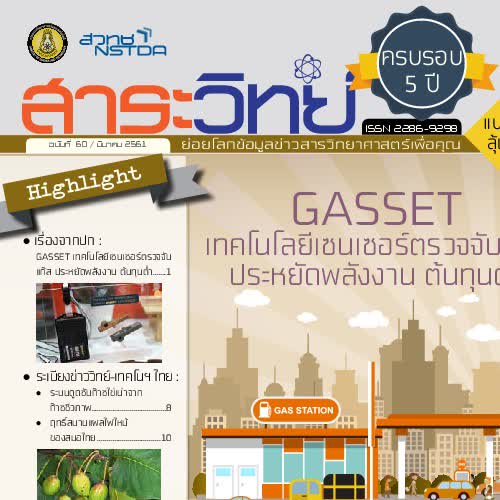 | คำอธิบาย : เรื่องจากปก: GASSET เทคโนโลยีเซนเซอร์ตรวจจับแก๊ส ประหยัดพลังงาน ต้นทุนต่ำ |