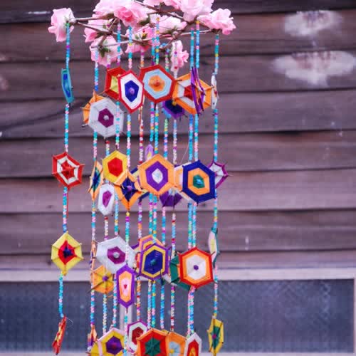 | คำอธิบาย : ธุงใยแมงมุม เป็นสัญลักษณ์ของความเชื่อเกี่ยวกับโชคลางของชาวอีสาน และประเทศอื่น ๆ ในดินแดนอุษาคเนย์ ซึ่งมีความเชื่อพื้นฐานจากวัฒนธรรมของผี พราหมณ์และพุทธ ที่หลอมรวมเป็นเอกลักษณ์อันโดดเด่นของภูมิภาค ตุงใยแมงมุม มีทั้งแบบสี่ด้านหรือหกด้าน ทำมาจากเส้นไหมหรือเส้นด้ายที่มีหลากหลายสีสันมัดกับไม้ไผ่ที่เหลาแล้ว แต่จะกำหนดขนาด มัดและม้วนจนเป็นวงรอบคล้ายใยแมงมุมที่โยงไปโยงมา การที่แมงมุมมีใยนี่เองที่ชาวบ้านใช้แทนการเชื่อมโยงวิญญาณ บุญกุศล ไปสู่ภพหลังความตายได้ โดยเป้าหมายคือสวรรค์นั่นเอง เมื่อเสร็จแล้วก็นำมาร้อยเข้าด้วยกันกลายเป็นสายเดียวกันหรือตามรูปแบบต่างๆ ที่ออกแบบให้สวยงาม แล้วนำไปตกแต่งมณฑลพิธีหรือพื้นที่ศักดิ์สิทธิ์ |
