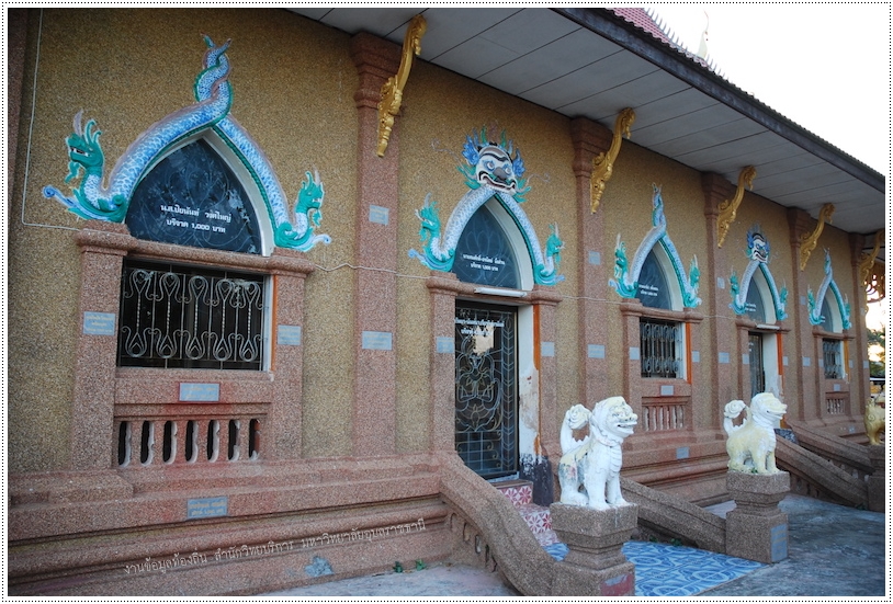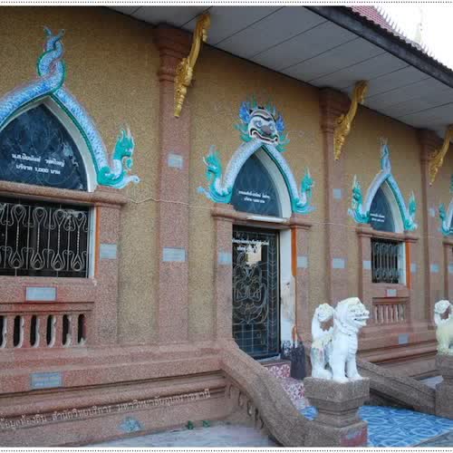 คำอธิบาย : ศาลาพระนอนหรือวิหารพุทธไสยาสน์ ของวัดเหนือ อำเภอเขมราฐ จังหวัดอุบลราชธานี สร้างในปี พ.ศ. 2354 เป็นศาลาทำด้วยไม้ มุงด้วยหญ้าคา จนปี พ.ศ. 2467 ทางวัดได้สร้างศาลาการเปรียญขึ้นใหม่ ทำได้ไม้มุงหลังคาด้วยไม้กระดาน และมีช่างชาวญวนมาก่ออิฐถือปูนและแกะสลักลายนูนเป็นรูปราหูกินนาคบนซุ้มประตูด้านทิศตะวันออกและทิศเหนือ ที่ซุ้มประตูด้านทิศตะวันตกและซุ้มหน้าต่างทุกบาน เป็นรูปนาค 2 ตัวเอาหางพันกัน เป็นแหล่งศึกษาและเรียนรู้ศิลปกรรมท้องถิ่นอีกแห่งหนึ่งของจังหวัดอุบลราชธานี |