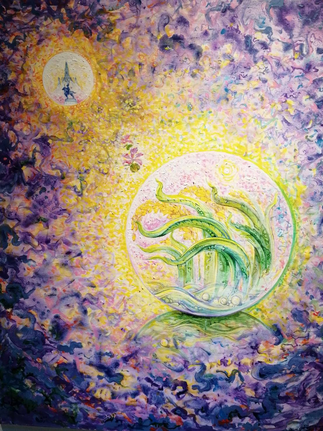 | คำอธิบาย : วันศุกร์ที่ ๑๘ มกราคม พ.ศ.๒๕๖๒ ผลงาน จิตรกรรมแนวไทยประเพณีชื่อ “ปูชาจปูชนียานัง” บูชาในสิ่งที่ควรบูชา ร่วมแสดงนิทรรศการศิลปะ ”จินตนาการบ้านสมเด็จฯ” ศิลปกรรมรำลึก ครั้งที่ ๓ ณ หอศิลป์ BSRU มหาวิทยาลัยราชภัฏบ้านสมเด็จเจ้าพระยา |