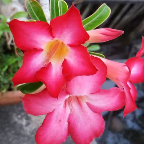 | คำอธิบาย : ดอกชวนชมสีแดงขาว |