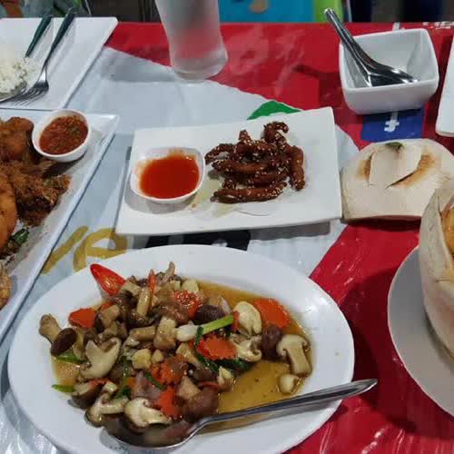 | คำสำคัญ : หมูทอดงา, จานชาม, ผักเห็ด, ข้าว, อาหารบนโต๊ะ, ห่อหมกมะพร้าวอ่อน, โต๊ะอาหาร, ปลาทอดกระเทียม |