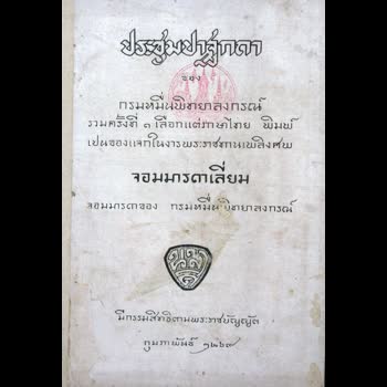 | คำอธิบาย : หนังสื่อเก่าจาก ห้องสมุดต้นฉบับจอมมารดาเลี่ยมประชุมปาฐกถา ของ กรมหมื่นพิทยาลงกรณ์รวมครั้งที่ 1 เลือกแต่ภาษาไทย พิมพ์เป็นของแจกในงานพระราชทานเพลิงศพจอมมารดาเลี่ยม จอมมารดาของ กรมหมื่นพิทยาลงกรณ์มีกรรมสิทธิตามพระราชบัญญัต กุมภาพันธ์ 2469 |