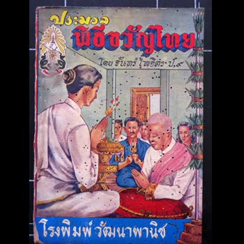 | คำอธิบาย : หนังสื่อเก่าจาก ห้องสมุดต้นฉบับประมวลพิธีขวัญไทยโดย จันทร์ ไพจิตรโรงพิมพ์ วัฒนาพานิช |