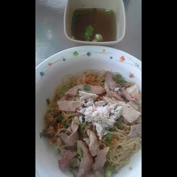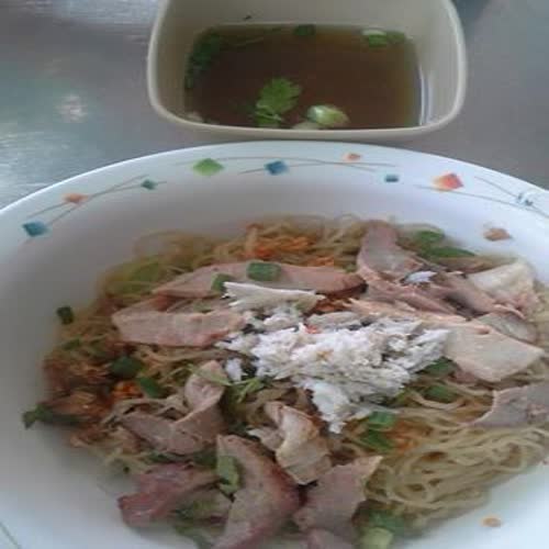 | คำสำคัญ : อาหารประเภทเส้น, บะหมี่ไข่ใส่หมูแดง ปู ผักกวางตุ้ง, บะหมี่แห้ง |