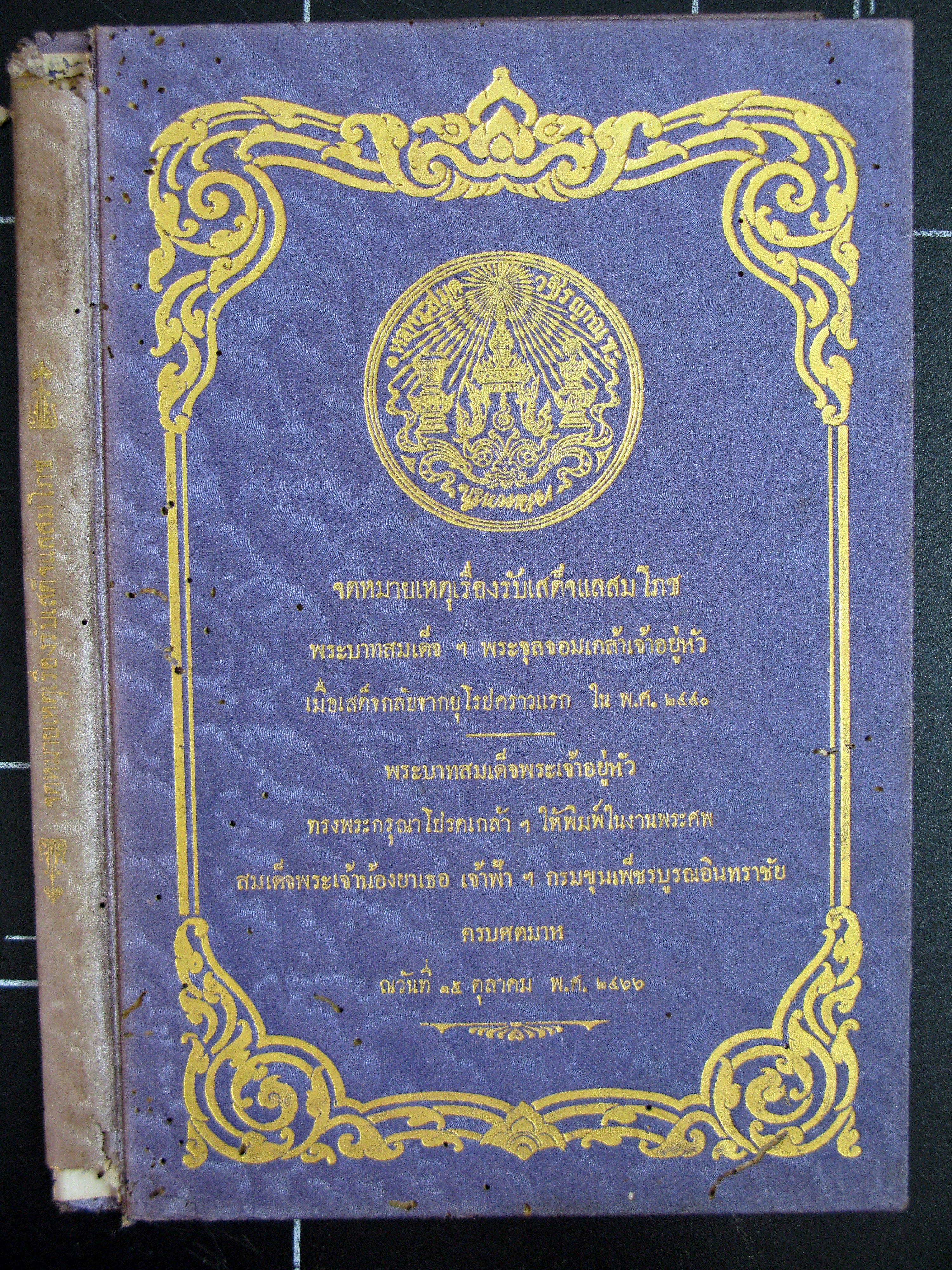 | คำสำคัญ : พระจุลจอมเกล้าเจ้าอยู่หัว, จดหมายเหตุ, หนังสือเก่า, ปกหนังสือ, ต้นฉบับ |