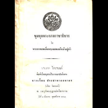 | คำสำคัญ : ปกหนังสือ, เรียบ ประชานาถธนากร, ต้นฉบับ, พระจอมเกล้าเจ้าอยู่หัว, หนังสือเก่า, พระบรมราชาธิบาย, เรียบ ไสยานนท์, ฌาปนกิจศพ |