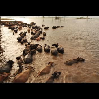| คำอธิบาย : วิถีชีวิตของ ควายปลัก ที่อาศัยอยู่ระหว่างบ้านหัวป่าระโนด และทะเลน้อยพัทลุงปกติ ควายปลักบริเวณนั้น จะอาศัยกินหญ้าในคลอง ในทะเลสาบ น้ำท่วมสูงท่วมนานหลายวัน ควายอดอาหารประเภทหญ้า ผอมโซ และทนความหนาวเย็นไม่ได้ เลยตายเยอะโดยเฉพาะลูกควาย และบางฝูงโดนน้ำพัดพาไป |