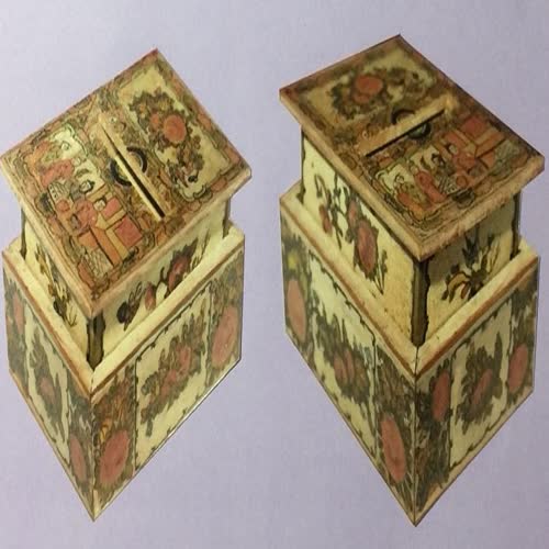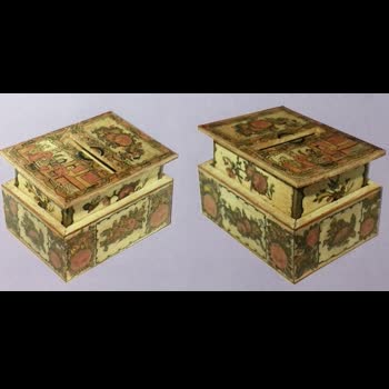 | คำสำคัญ : ภาพวาดเทคนิคสีน้ำบนกล่องไม้โมก, กล่องใส่บุหรี่ลายโป๊ยเซียน, งานวาด, ภาพวาด |