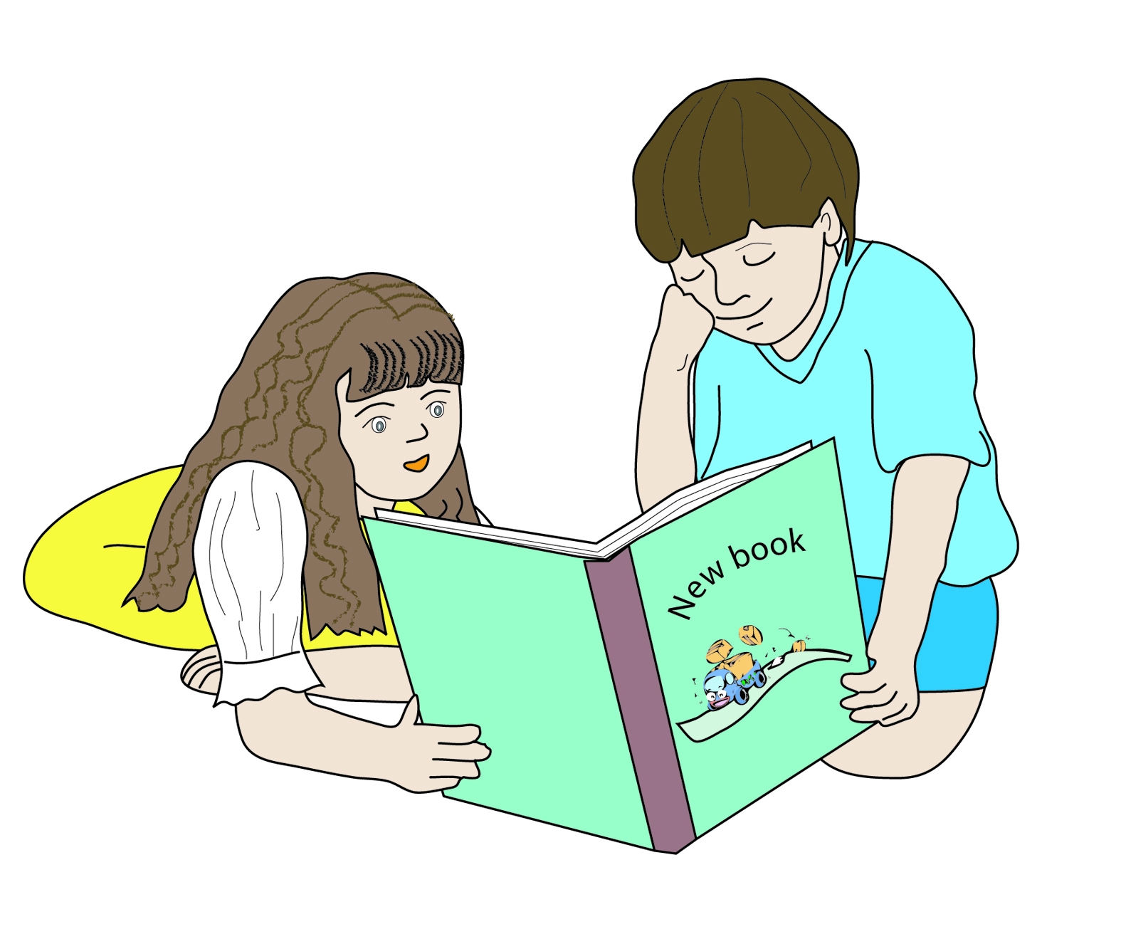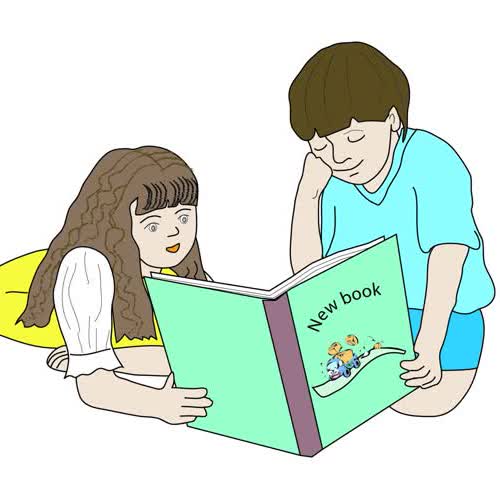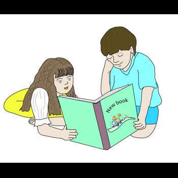 | คำอธิบาย : เด็กชาย เด็กหญิงอ่านหนังสือด้วยกัน |