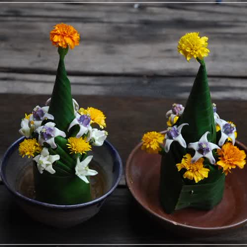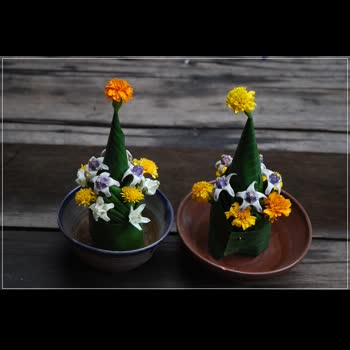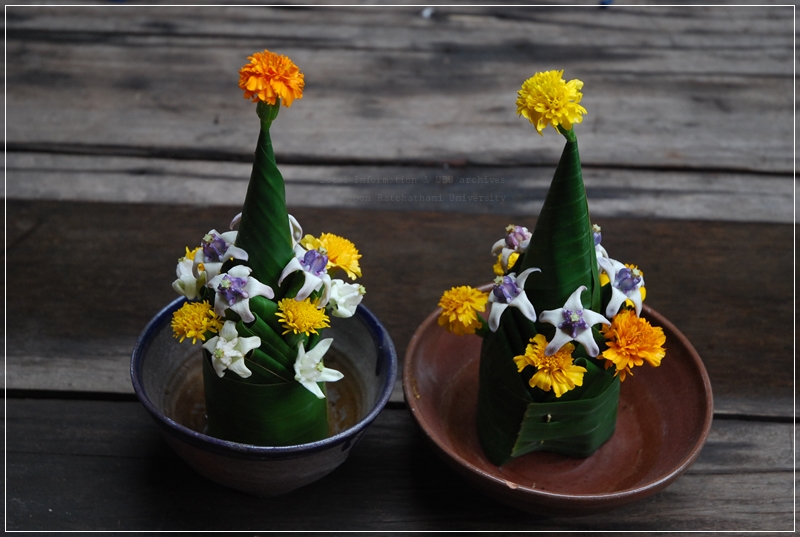 | คำสำคัญ : ใบตอง, ดอกไม้, ขันหมากเบ็ง |