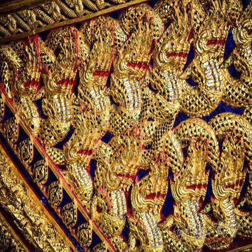 | คำอธิบาย : ลวดลายไม้จำหลักเรือพระที่นั่งอเนกขาติภุชงค์คือลายนาคเกี้ยวหรือนาคขอสร้อย เกี่ยวกระหวัดรัดรึงกันนับร้อยพันตัว |