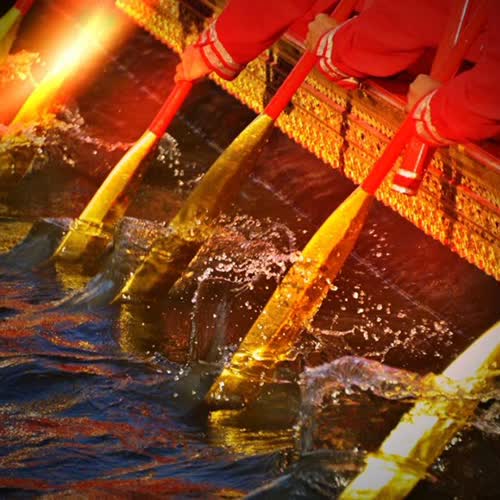 พายและฉากที่ใช้ในขบวนพยุหยาตราทางชลมารค ได้รับใบอนุญาตภายใต้ ให้เผยแพร่-โดยต้องระบุที่มาแต่ห้ามดัดแปลงและห้ามใช้เพื่อการค้า 3.0 Thailand.