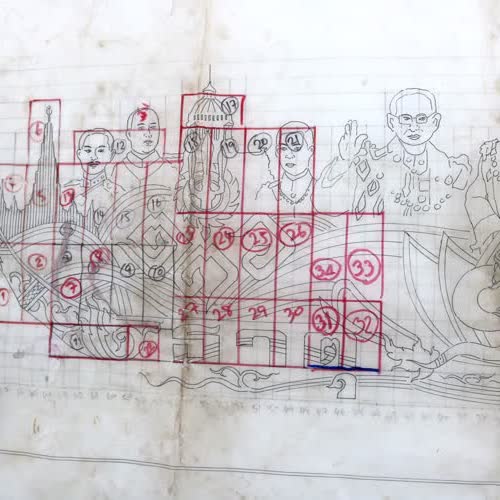 | ชื่อเรื่อง : ประเพณีไหลเรือไฟ จ.นครพนม ภาพการเขียนแบบทำเรือไฟ |