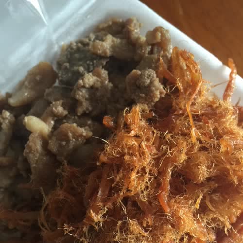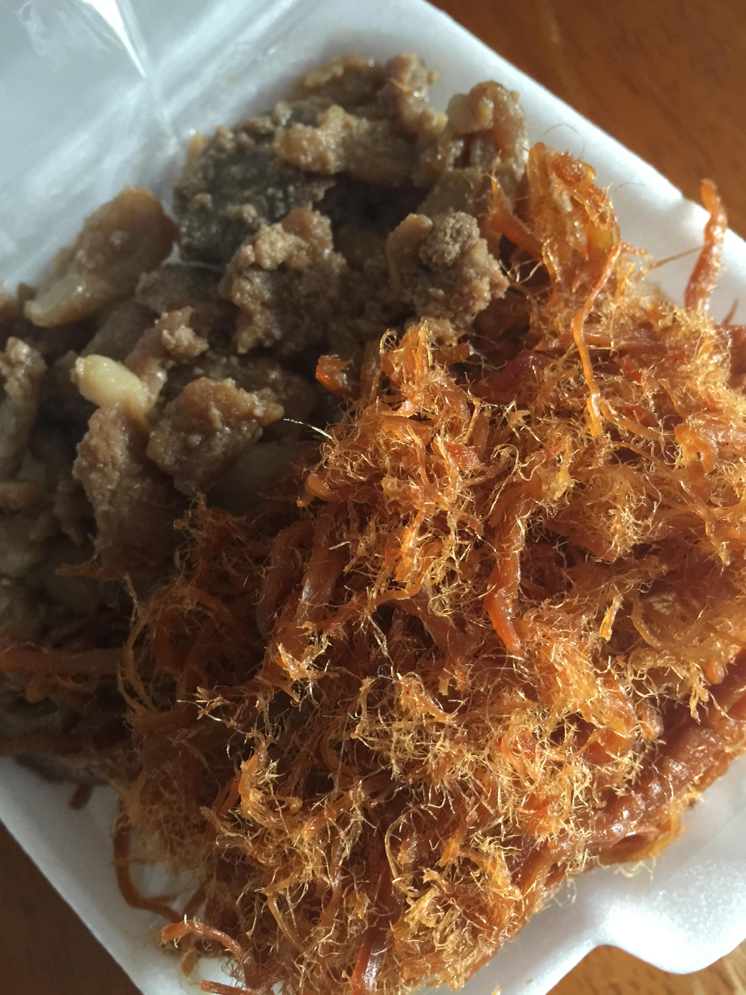 "ข้าวเหนียวหมูทอดหมูฝอย".