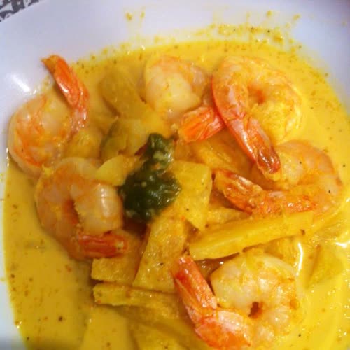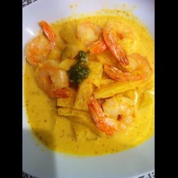 | คำอธิบาย : แกงกะทิกุ้งใส่สับปะรด |