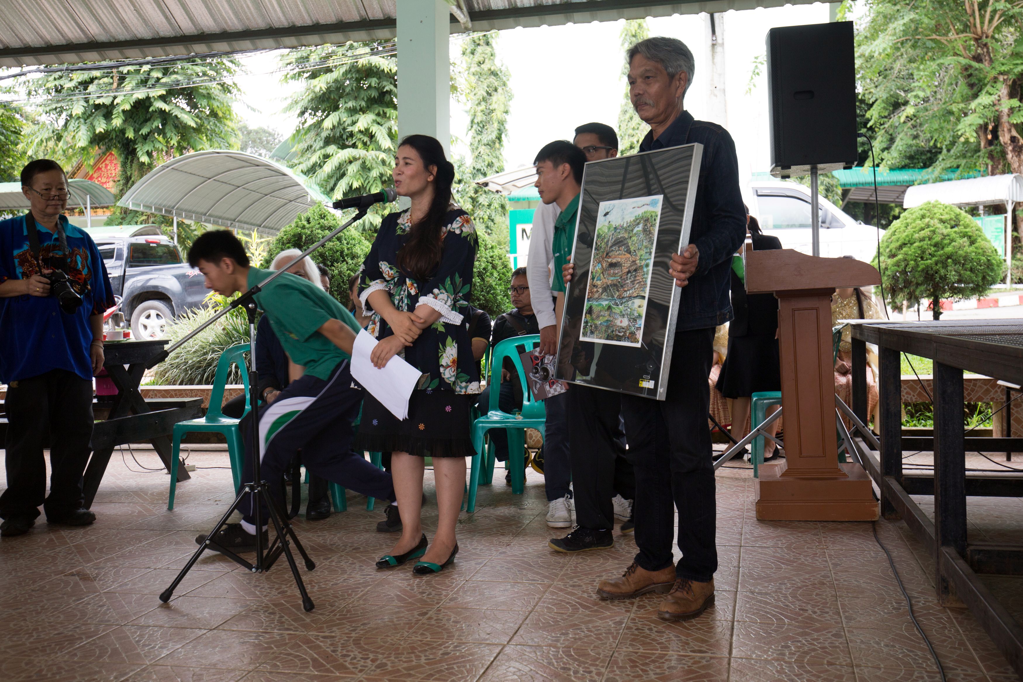 (2562). ภาพกิจกรรมสอนน้องหมูป่าวาดรูป กับศิลปินขัวศิลปะ จ.เชียงราย,