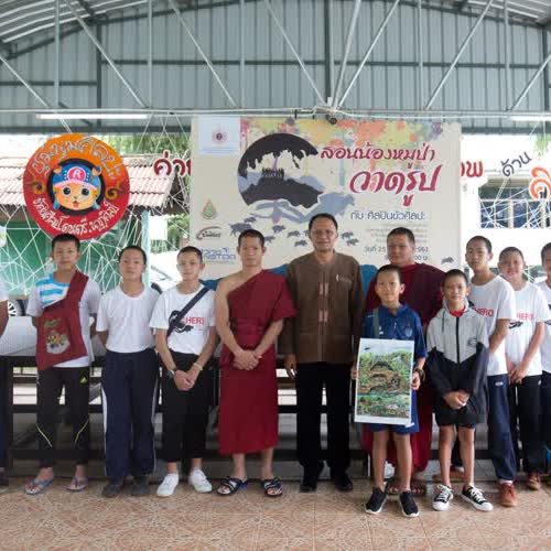 (2562). ภาพกิจกรรมสอนน้องหมูป่าวาดรูป กับศิลปินขัวศิลปะ จ.เชียงราย,