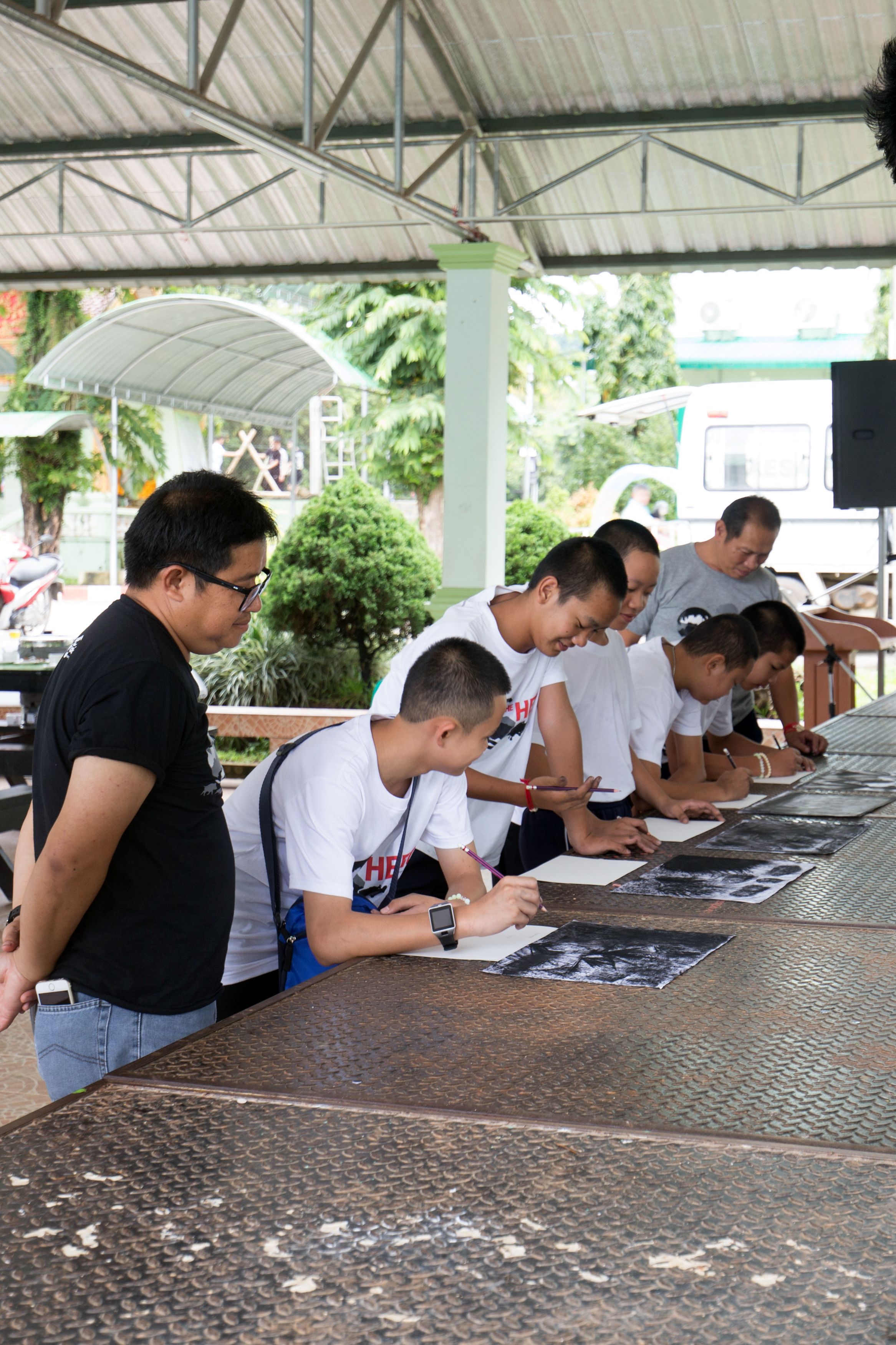 (2562). "ภาพกิจกรรมสอนน้องหมูป่าวาดรูป กับศิลปินขัวศิลปะ จ.เชียงราย".