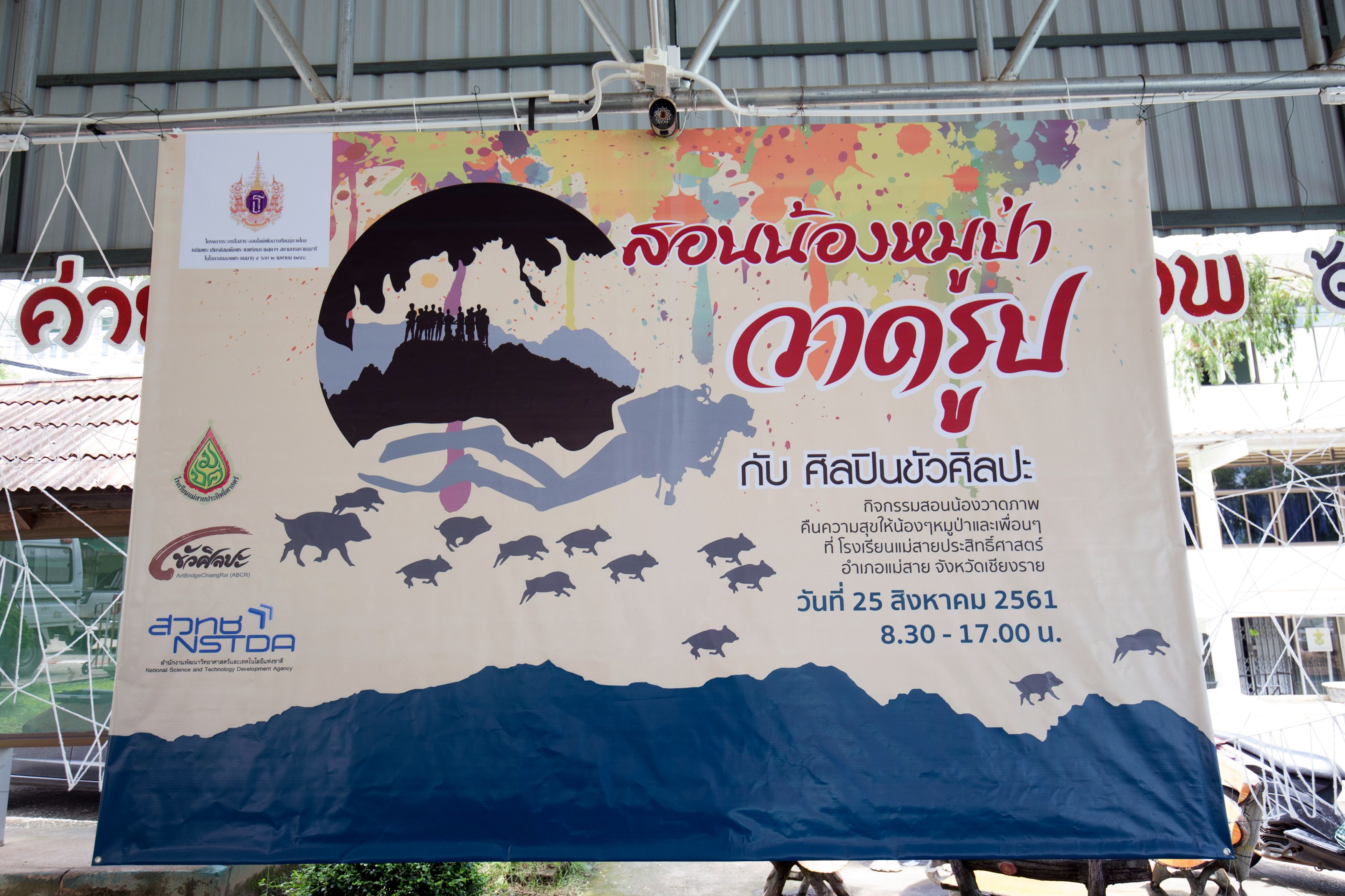 (2562). ภาพกิจกรรมสอนน้องหมูป่าวาดรูป กับศิลปินขัวศิลปะ จ.เชียงราย,