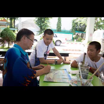 | ชื่อเรื่อง : ภาพกิจกรรมสอนน้องหมูป่าวาดรูป กับศิลปินขัวศิลปะ จ.เชียงราย |