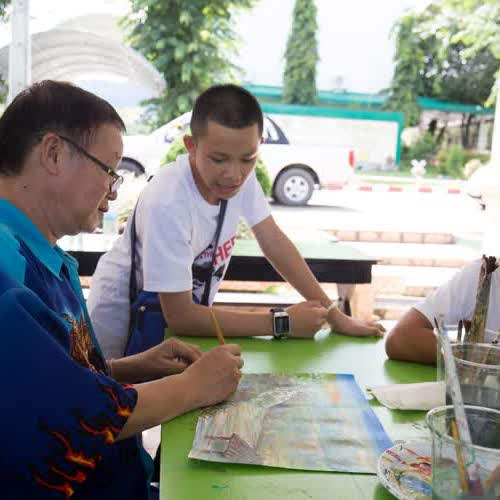 ภาพกิจกรรมสอนน้องหมูป่าวาดรูป กับศิลปินขัวศิลปะ จ.เชียงราย ได้รับใบอนุญาตภายใต้ ให้เผยแพร่-โดยต้องระบุที่มาแต่ห้ามดัดแปลงและห้ามใช้เพื่อการค้า 3.0 Thailand.