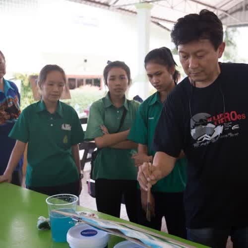 | ชื่อเรื่อง : ภาพกิจกรรมสอนน้องหมูป่าวาดรูป กับศิลปินขัวศิลปะ จ.เชียงราย |