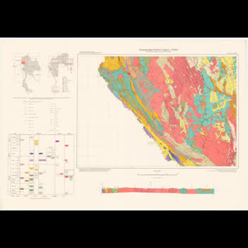 | คำอธิบาย : โครงการความร่วมมือระหว่างประเทศไทยกับสหพันธ์สาธารณรัฐเยอรมนีได้เริ่มขึ้นเมื่อปี พ.ศ. 2508 ทำการสำรวจธรณีวิทยาในบริเวณภาคเหนือ และภาคตะวันตกบางส่วน จนสิ้นสุดโครงการในปี พ.ศ. 2514 Geological Map of Northern Thailand 1:250000 Sheet Li 1976 |