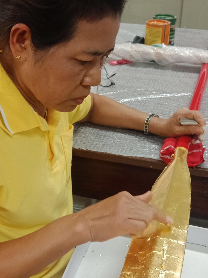 | คำสำคัญ : ทองคำเปลว, พายทองใบข้าว, พายเรือและคัดฉากเรือพระที่นั่ง ๔ ลำ, เรือพระราชพิธี |