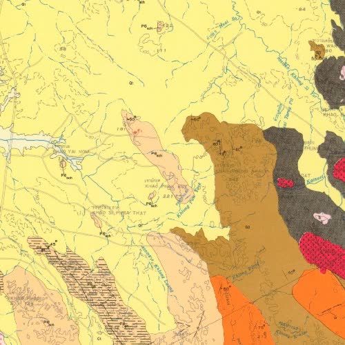 | คำอธิบาย : กองธรณีวิทยา กรมทรัพยากรธรณี ได้ดําเนินการสํารวจธรณีวิทยาอย่างเป็นระบบต่อเนื่องมาเพื่อให้ได้แผนที่ธรณีวิทยารากฐาน มาตราส่วน 1:250,000 ทั่วประเทศ โดยสำรวจแล้วเสร็จในปี พ.ศ. 2523 ซึ่งแผนที่ธรณีวิทยามาตราส่วน 1:250,000 ระวางแรกที่จัดพิมพ์ขึ้นคือระวางจังหวัดลําปาง ซึ่งสำรวจโดยนักธรณีวิทยาไทย และได้พิมพ์ออกเผยแพร่รวมทั้งสิ้น 46 ระวาง ครอบคลุมพื้นที่ทั่วทั้งประเทศ 514,912 ตารางกิโลเมตร |