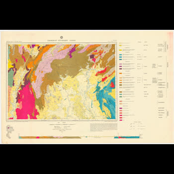 | คำอธิบาย : กองธรณีวิทยา กรมทรัพยากรธรณี ได้ดําเนินการสํารวจธรณีวิทยาอย่างเป็นระบบต่อเนื่องมาเพื่อให้ได้แผนที่ธรณีวิทยารากฐาน มาตราส่วน 1:250,000 ทั่วประเทศ โดยสำรวจแล้วเสร็จในปี พ.ศ. 2523 ซึ่งแผนที่ธรณีวิทยามาตราส่วน 1:250,000 ระวางแรกที่จัดพิมพ์ขึ้นคือระวางจังหวัดลําปาง ซึ่งสำรวจโดยนักธรณีวิทยาไทย และได้พิมพ์ออกเผยแพร่รวมทั้งสิ้น 46 ระวาง ครอบคลุมพื้นที่ทั่วทั้งประเทศ 514,912 ตารางกิโลเมตร |