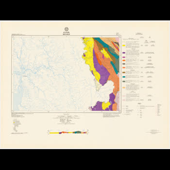 | คำอธิบาย : กองธรณีวิทยา กรมทรัพยากรธรณี ได้ดําเนินการสํารวจธรณีวิทยาอย่างเป็นระบบต่อเนื่องมาเพื่อให้ได้แผนที่ธรณีวิทยารากฐาน มาตราส่วน 1:250,000 ทั่วประเทศ โดยสำรวจแล้วเสร็จในปี พ.ศ. 2523 ซึ่งแผนที่ธรณีวิทยามาตราส่วน 1:250,000 ระวางแรกที่จัดพิมพ์ขึ้นคือระวางจังหวัดลําปาง ซึ่งสำรวจโดยนักธรณีวิทยาไทย และได้พิมพ์ออกเผยแพร่รวมทั้งสิ้น 46 ระวาง ครอบคลุมพื้นที่ทั่วทั้งประเทศ 514,912 ตารางกิโลเมตร |